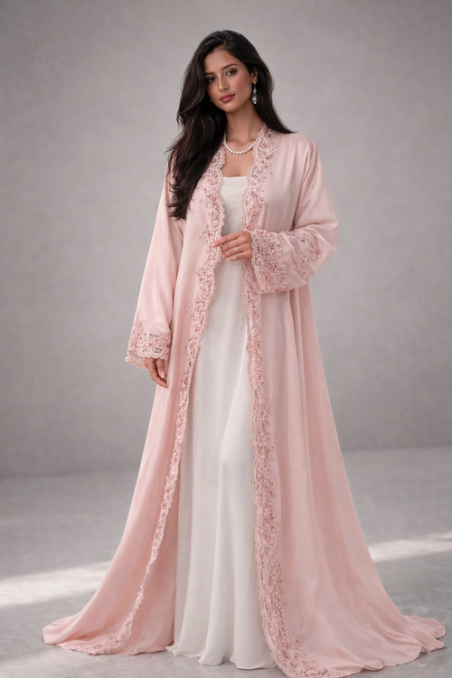 Blush Open Abaya Cardigan with Embellished Sleeves